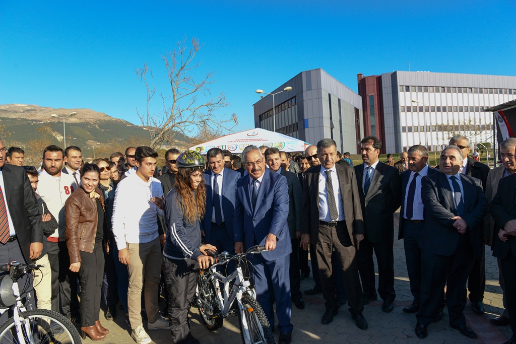 Açılış konuşmalarının ardından 50 bisikletin üniversiteye teslimi gerçekleştirilirken, protokol üyeleri öğrencilerle birlikte, “İki Teker, Obezite ve Kalbe Yeter” sloganıyla pedal çevirdi. Etkinlikler çerçevesinde KSÜ Beden Eğitimi ve Spor Yüksekokulu öğrencileri yeni spor branşlarını tanıtırken, Rektör Deveci ‘boccia’ ve ‘hemsball’ tanıtım stantlarını gezerek atışlar yaptı. Etkinlikler, kan bağışının ardından öğrencilere mandalina ve elma ikramıyla son buldu.