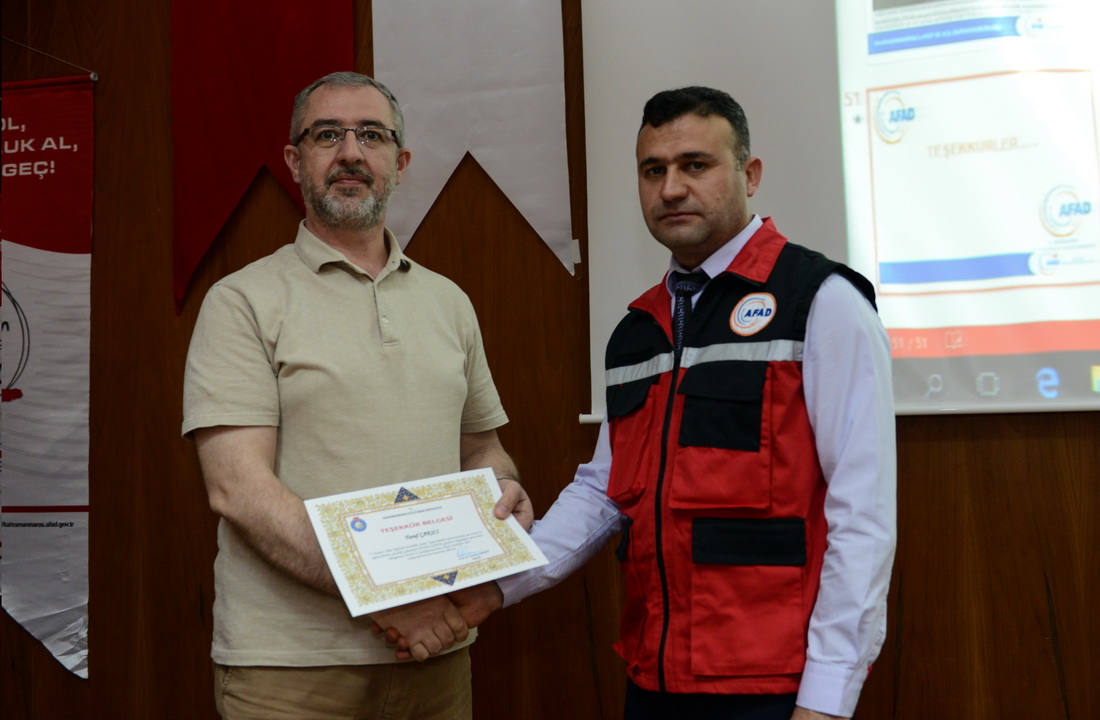 Kahramanmaraş AFAD İl Müdürü Zafer Özcan ise AFAD bünyesinde yürütülen çalışmalara ilişkin katılımcıları bilgilendirdi. Deprem ve afet konusundaki mevzuatın günümüz ihtiyaçları doğrultusunda güncellenmesinin büyük önem arz ettiğine dikkat çeken Özcan, afet bilincinin arttırılması noktasında AFAD olarak yürüttükleri projeler hakkında bilgi verdi.