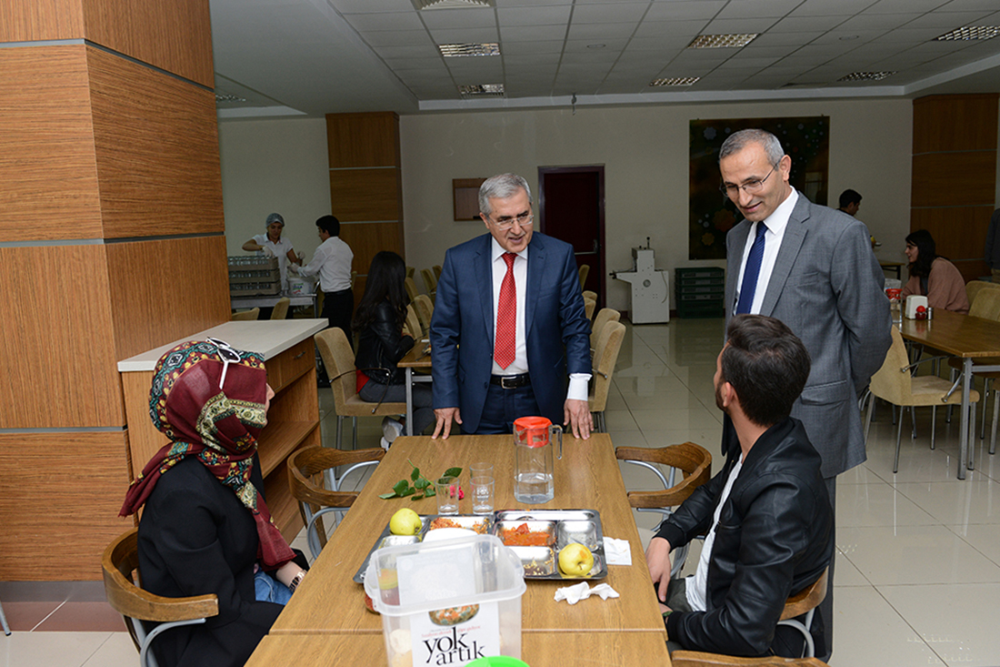 Rektör Can, öğle yemeğini de öğrencilerle birlikte yemek kuyruğuna girerek öğrenci yemekhanesinde yedi. Rektör Can’a KSÜ Rektör Yardımcıları Prof. Dr. Kadir Saltalı ve Prof. Dr. Zekeriya Pak da eşlik etti.