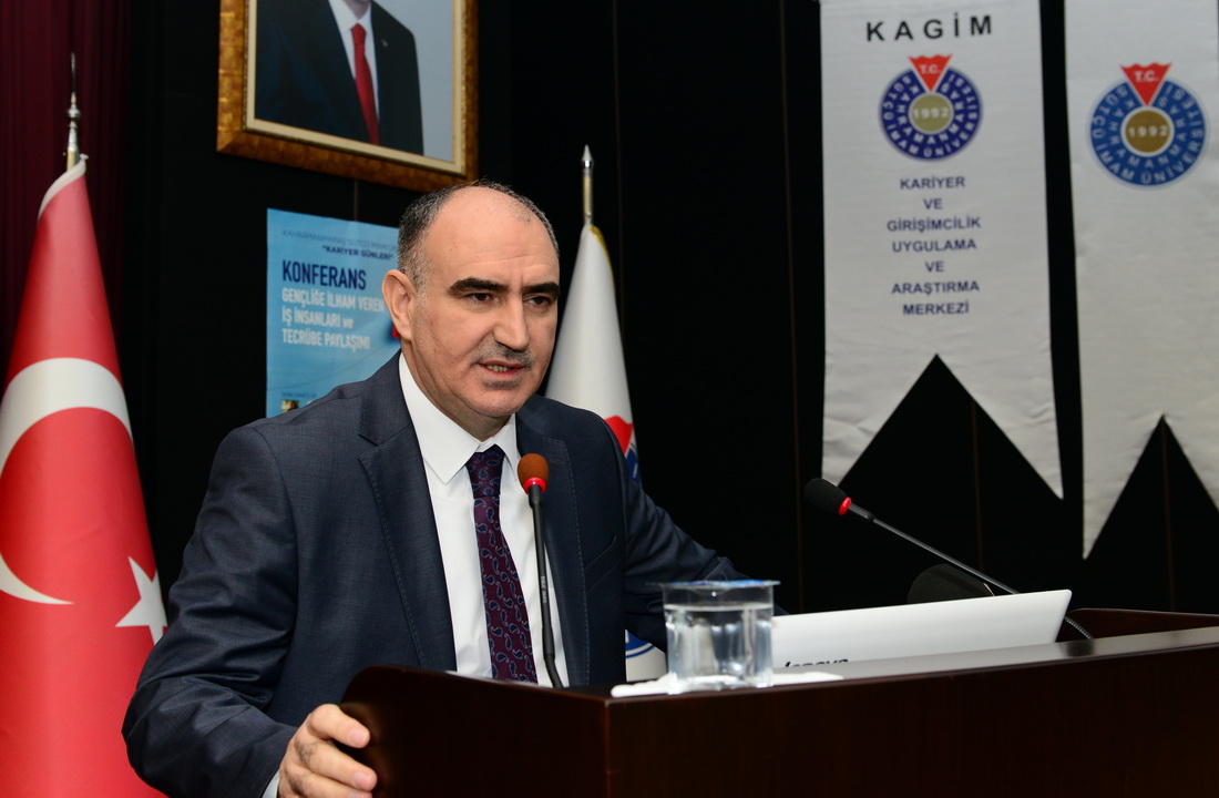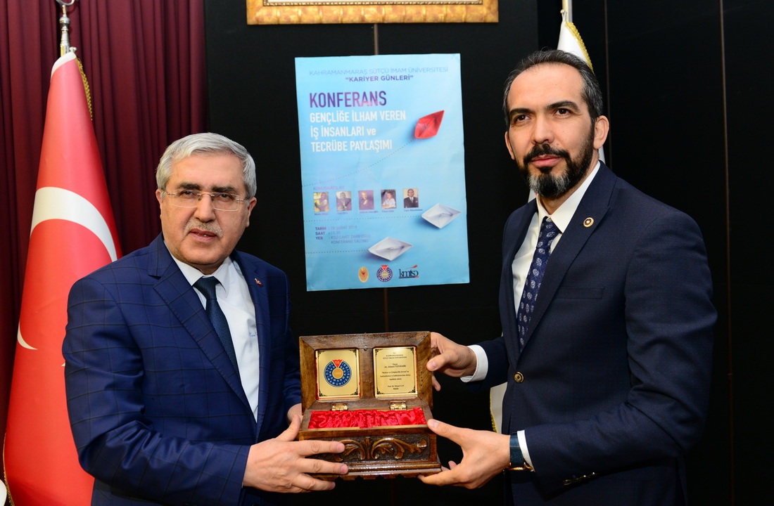 Mezuniyet öncesi öğrencilerin iş dünyasının gereklerine göre yetiştirilmelerinin gerekliliğine dikkat çeken ve KSÜ olarak iş dünyasından önemli isimlerin birikim ve tecrübelerinden yıl boyunca düzenlenen etkinlikler vasıtasıyla yararlanmaya çalıştıklarını ifade eden Rektör Can, “Biz iş dünyasının işine yarayan öğrenciler yetiştirmek zorundayız. Yoksa işe yarayan, hayata iyi hazırlayan üniversite olamayız. Türkiye’nin yetiştirdiği ve belli bir düzeye gelen siz iş insanlarının tecrübeleri, öğrencilerimizin ufkunu açan, onları göreve başlamadan hayatın kolaylık ve zorluklarını fark ettiren değerlerdir. Teorik bilgiyi, iş dünyasının tecrübeleriyle birleştirerek kaliteli insanlar yetiştirmek istiyoruz. Değişen piyasa koşullarına göre pozisyon alabilen, dijital dönüşüm bilincine ve bilgisine sahip, daha iyiyi arayan, uygulayan ve yeni anlayışlar getiren, çevresini etkileyebilen lider öğrenciler yetiştirmeye çalışıyoruz. Mezunlarımızın çalışma hayatındaki başarıları oranında üniversitemizi başarılı sayıyoruz.” şeklinde konuştu.