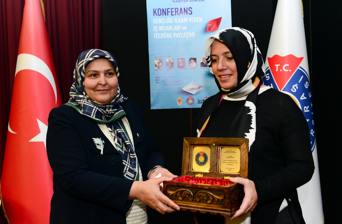 Girişimcilik serüvenlerini katılımcılarla paylaşan konuşmacılar, öğrencilerin kariyer yaşamlarına ilişkin yönelttikleri soruları da cevaplandırdılar. Panel oturumunun ardından Ak Parti Kahramanmaraş Milletvekili Habibe Öçal, Rektör Can, KMTSO Başkanı Serdar Zabun, KSÜ Rektör Yardımcıları Prof. Dr. Kadir Saltalı ve Prof. Dr. İbrahim Taner Okumuş ile Ak Parti Genel Başkan Yardımcısı Mahir Ünal’ın eşi Şule Ünal tarafından programa katkı sunan iş insanlarına çeşitli hediyeler takdim edildi.