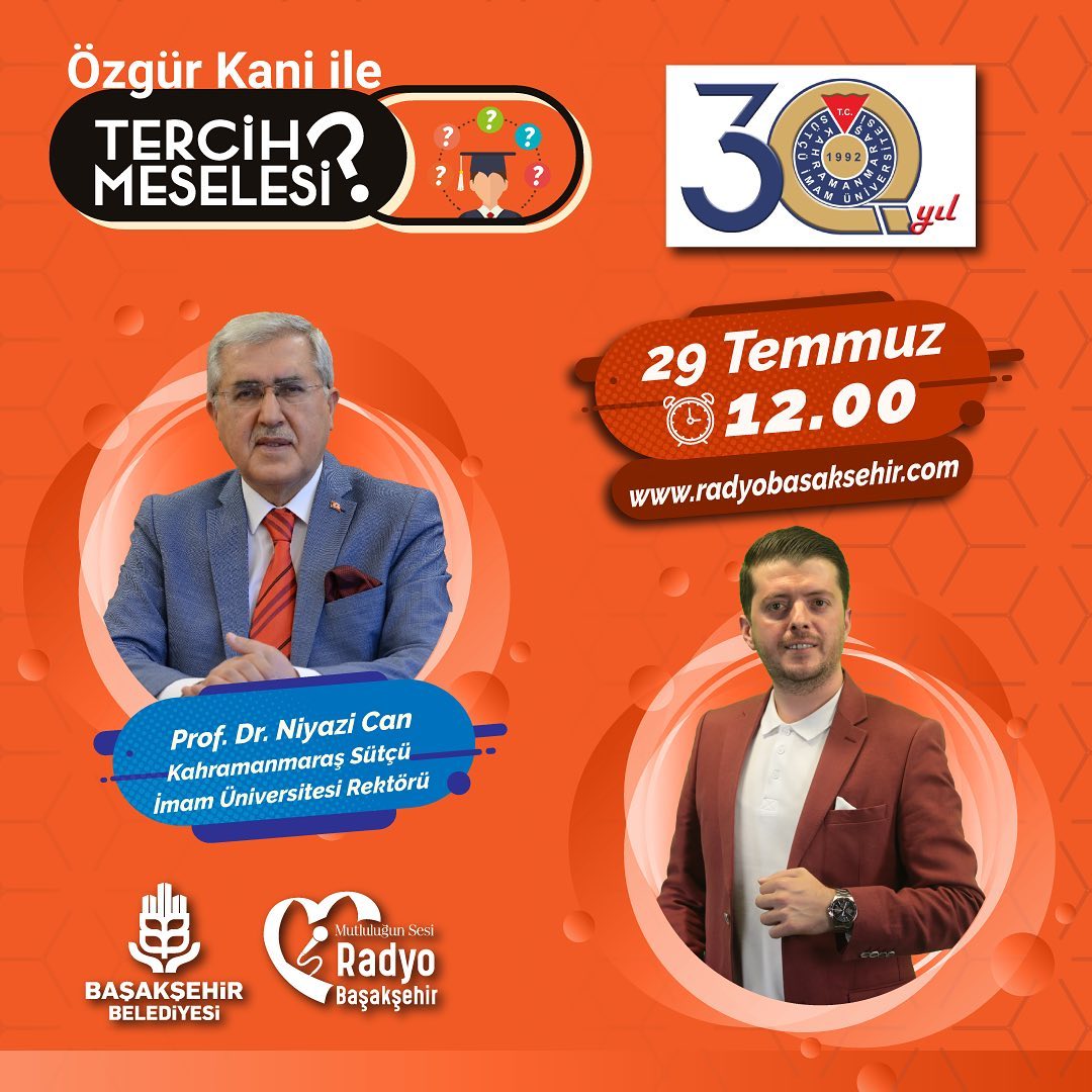 Kahramanmaraş Sütçü İmam Üniversitesi (KSÜ) Rektörü Prof. Dr. Niyazi Can, YKS sonuçlarının ardından tercih işlemlerinin başladığı bugünlerde öğrencilerin üniversiteler hakkında bilgi sahibi olması adına Radyo Başakşehir’in “Tercih Meselesi” programına konuk oldu. Rektör Prof. Dr. Niyazi Can, KSÜ’nün eğitim-öğretimden sosyal etkinliklere, bilimsel ve kültürel etkinliklerden sanata kadar birçok alanda sahip olduğu imkanlar hakkında bilgiler verdi.