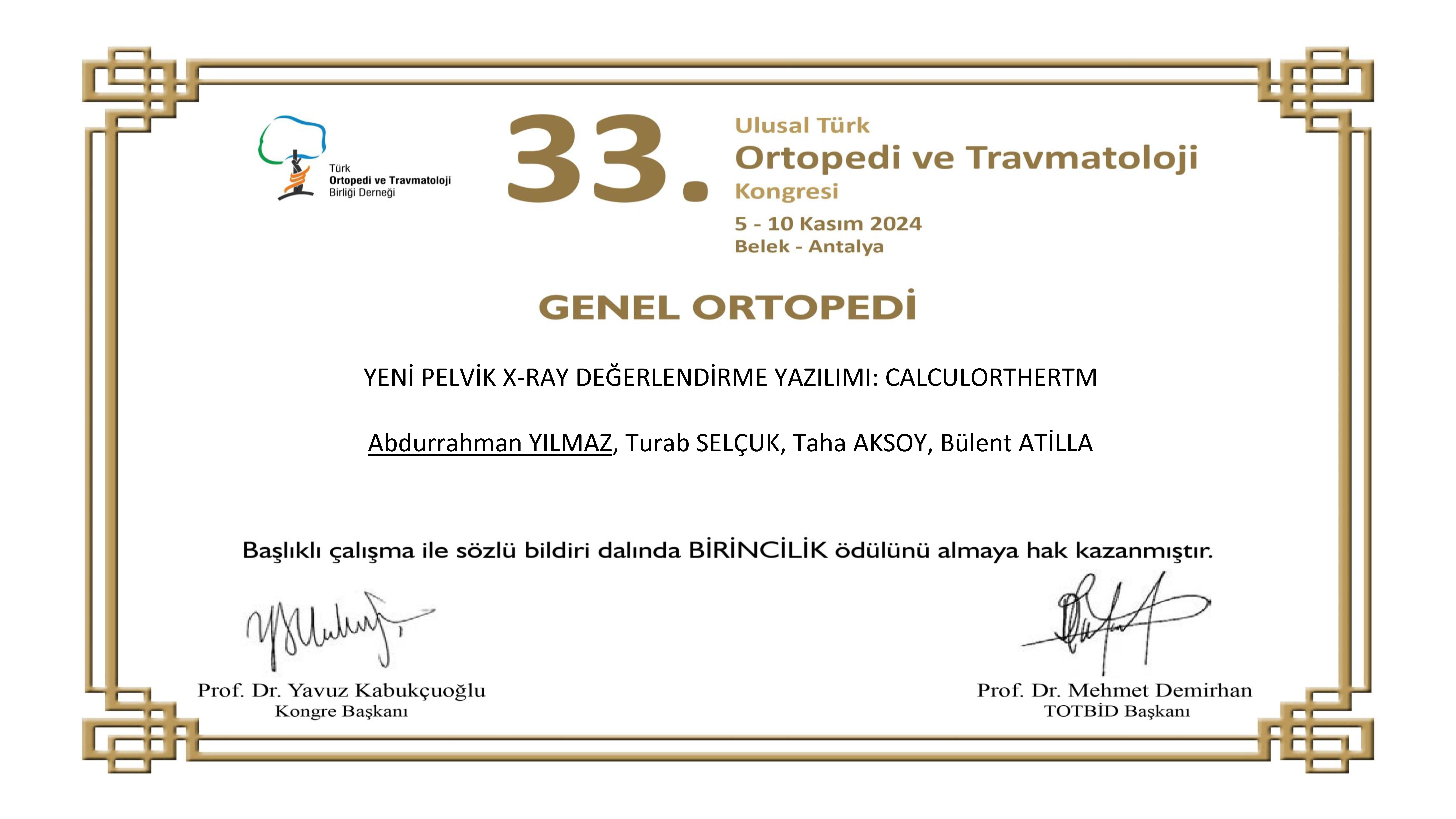 Dr. Öğr. Üyesi Turab Selçuk'un Sözlü Bildiride Birincilik Başarısı